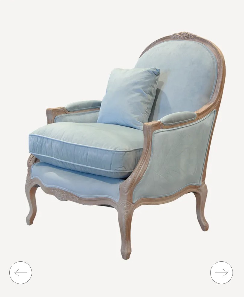 Natural antique designed chair with velvet lining and exposed wooden framing. This chair has the true character of French furnishings with its classically structured cabriole frame and round backing. This design goes beyond its time period, and would be beautifully styled in any kind of contemporary space.