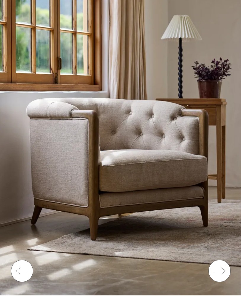 Pair the Ellsworth Chair with the Ellsworth Sofa to complete the look or use as a standalone piece. This beautifully constructed Four Hands chair will bring a touch of Parisian glamour to your living space. Featuring traditional button tufting, classic rolled arms and exposed framing, this well-proportioned chair suits both traditional and contemporary settings. Upholstered in a Neutral Wheat performance fabric for a warm, vintage feel.